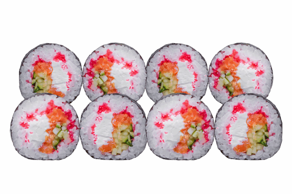 Рол 3 для сету ДіджиталізейшнРол з лососем власного копченя Склад: рис, норі, крем-сир, червона ікра масаго, лосось холодного копчення, огірок.