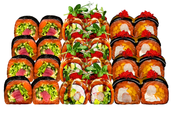 Усі роли в сеті — без рису. Це робить їх більш легкими для травлення, водночас зберігаючи яскравість смаку. Ідеальний варіант для двох гурманів, які цінують гастрономічну витонченість.