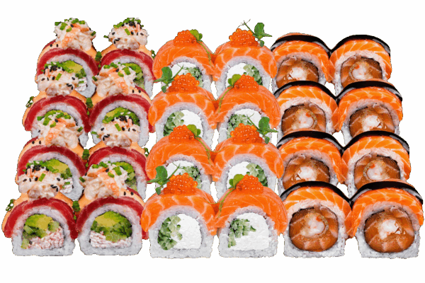 Склад: рис, норі, крем сир, огірок, філе лосося, червона ікра, мікрогрін