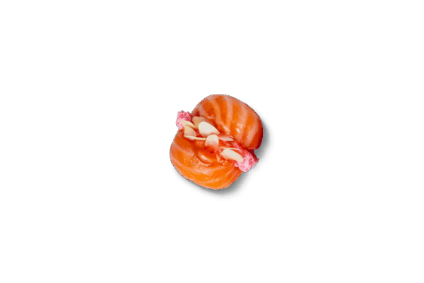 Склад: рис, норі, філе лосося, крем макарон, соус світ чилі, слайси мигдалю